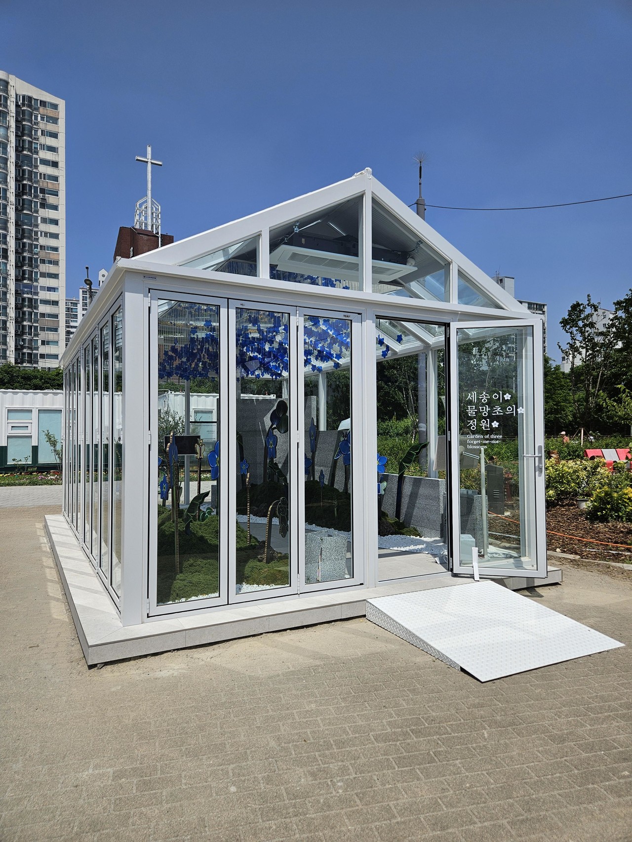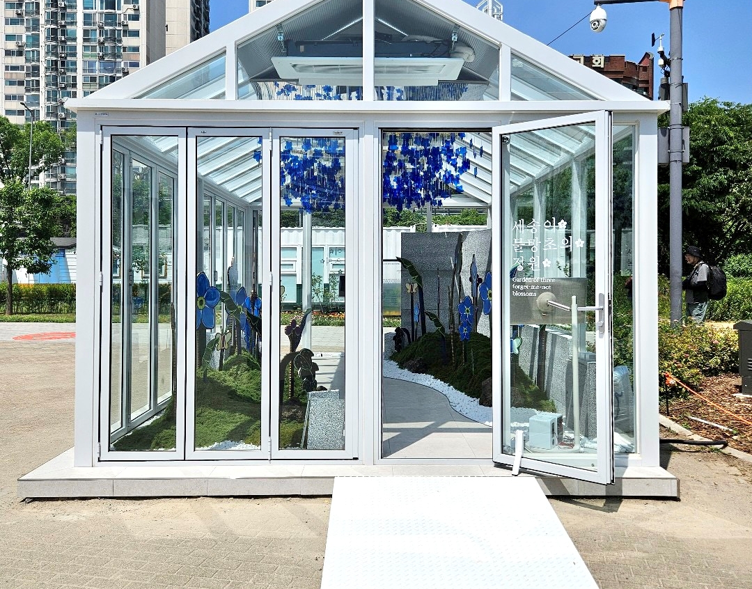 Message: 안과 밖이 투명하게 연결된 온실 구조를 통해, 이곳을 찾는 시민들이 '세 송이 물망초'가 전하는 그리움과 희망의 메시지를 자연스럽게 마주하고 공감하도록 했습니다.