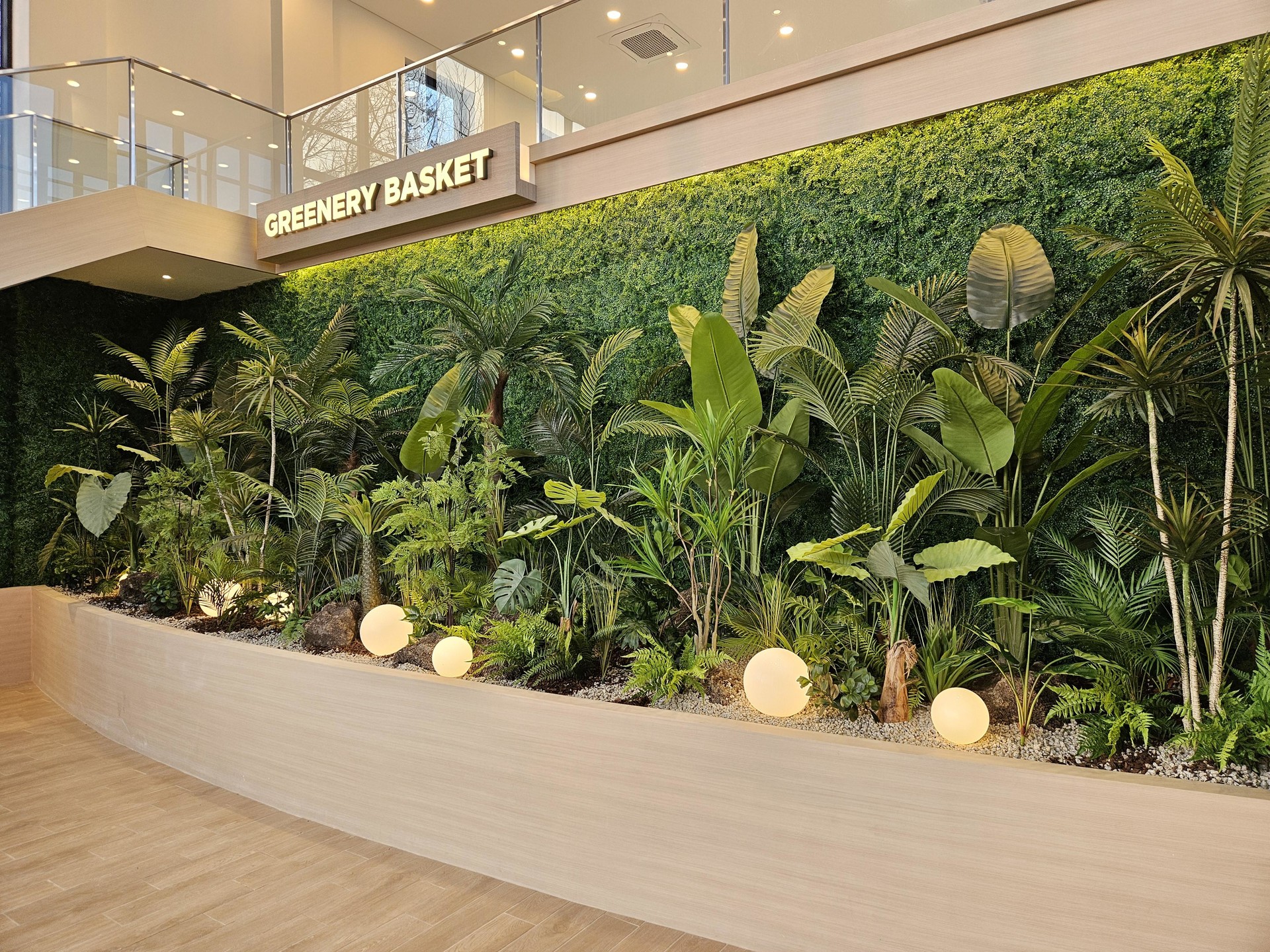 "일상에 지친 이들에게 건네는 초록빛 위로" '그리너리 바스켓'이라는 이름처럼, 공간 한켠에 마련된 우드 플랜터에 자연을 한가득 담아 선물했습니다.