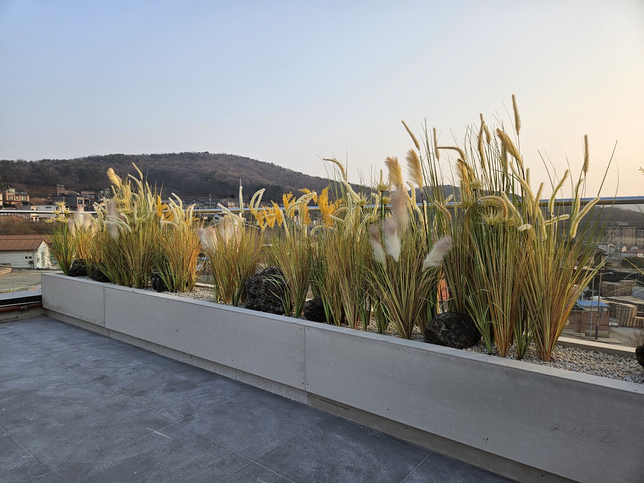 Detail: 식재 사이로 'LED 볼 조명'을 포인트로 배치하여, 잎사귀 사이로 은은하게 번지는 빛이 야간에도 감성적인 분위기를 자아내도록 완성했습니다.