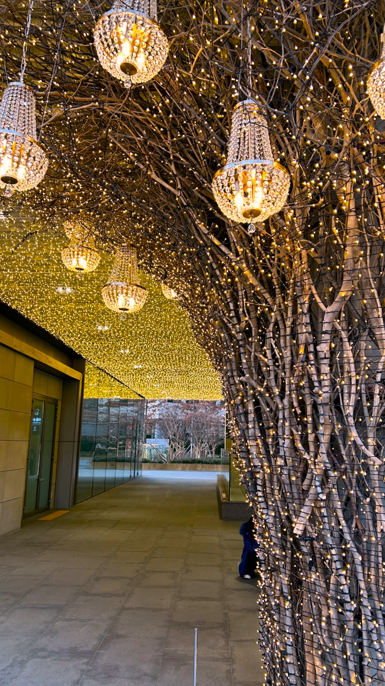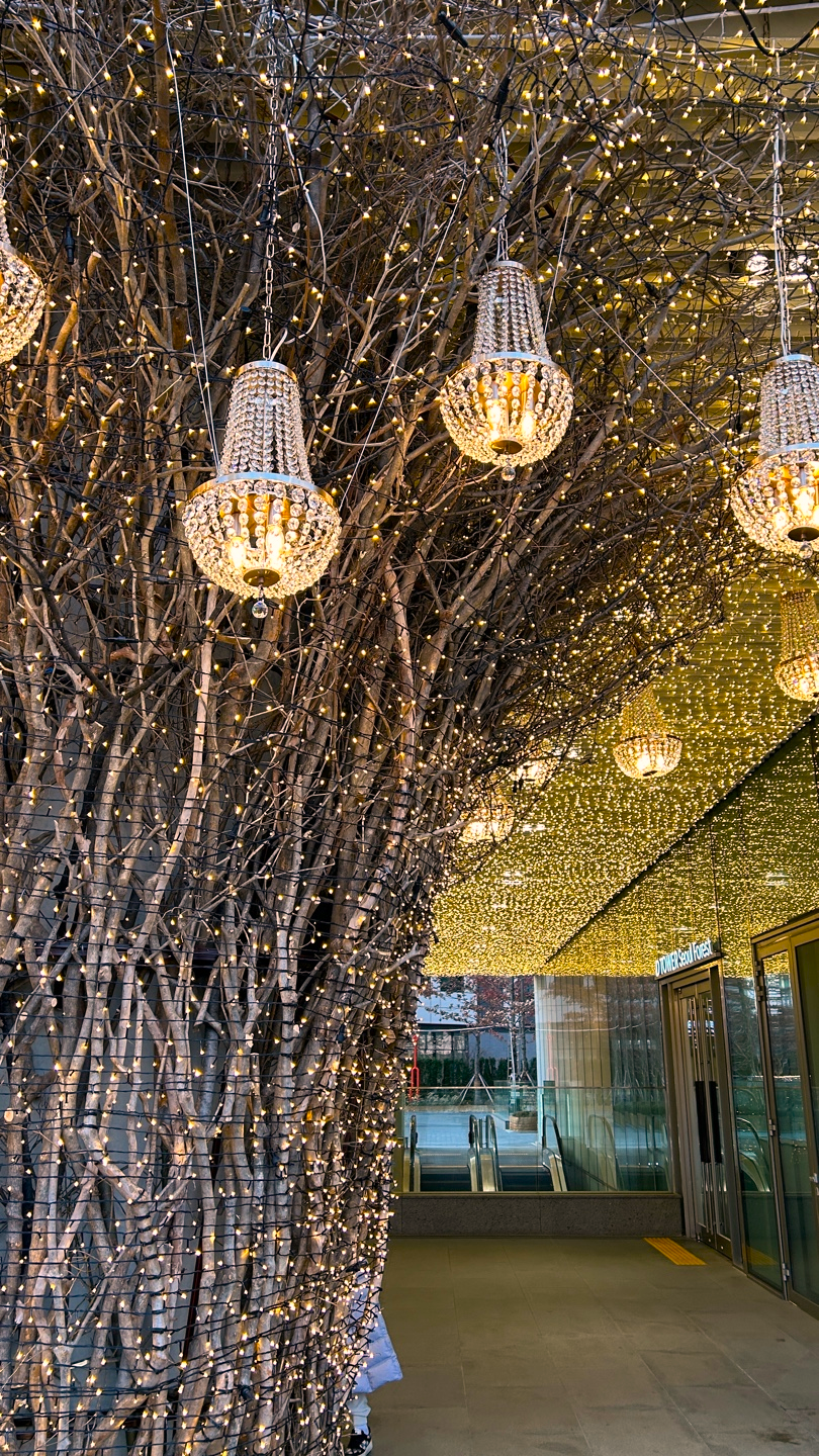 Concept: 'Luminous Winter'를 주제로, 겨울 나뭇가지에 빛을 더하고 클래식한 샹들리에를 매치하여 도심을 화려하게 감싸는 럭셔리한 무드를 연출했습니다.