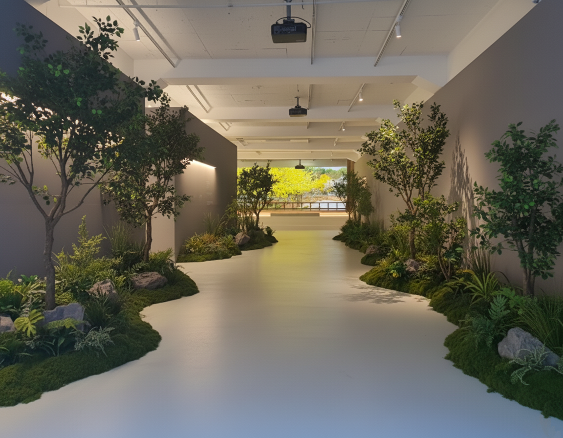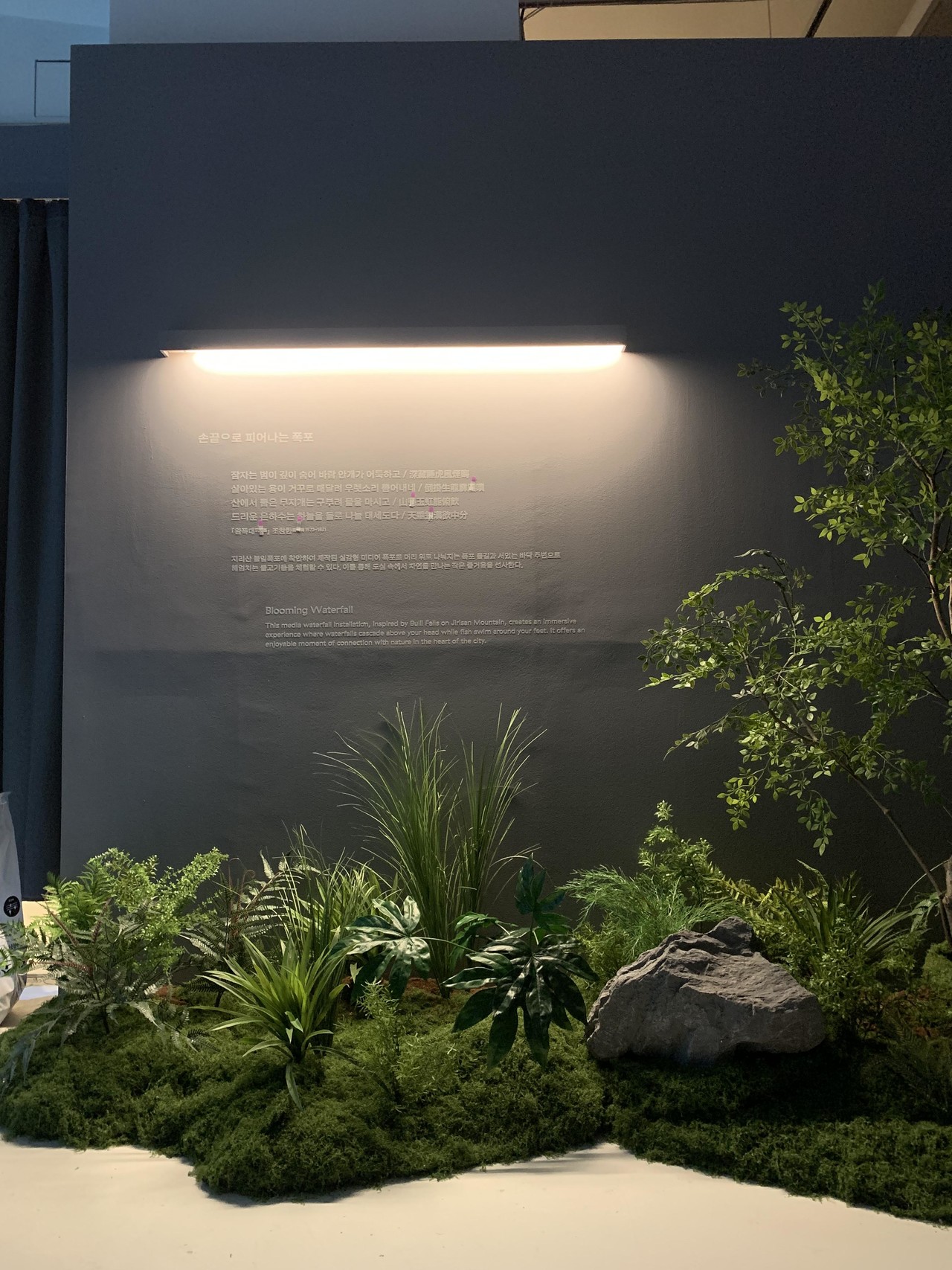 ◦ Design: 곡선형 이끼 지형과 수목을 배치해 미디어 아트와 조화되는 입체적 공간을 연출했습니다.