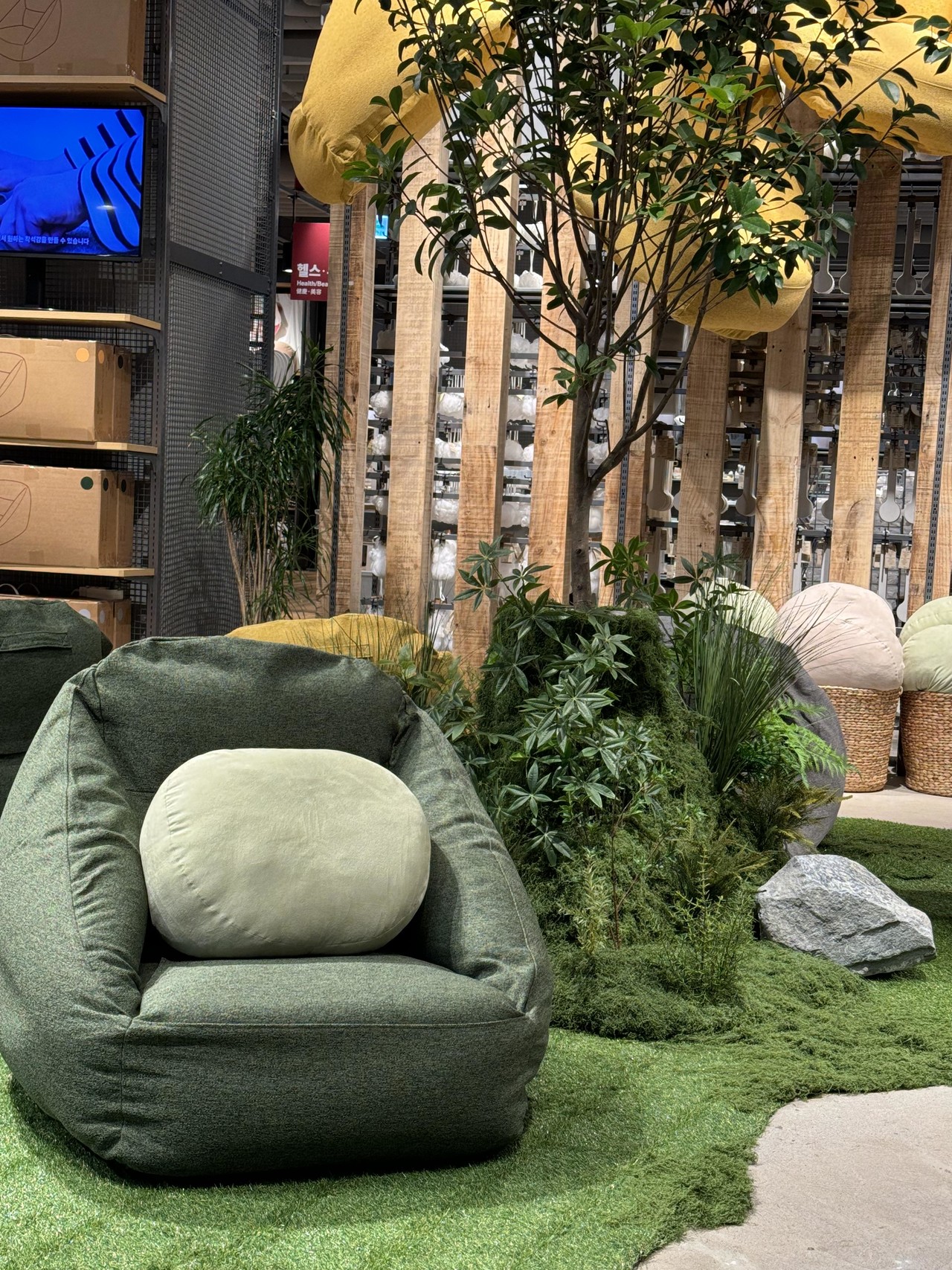 ◦ Design: 인조 잔디와 수목을 활용해 매장 내 안락한 '휴식의 섬'을 연출했습니다.