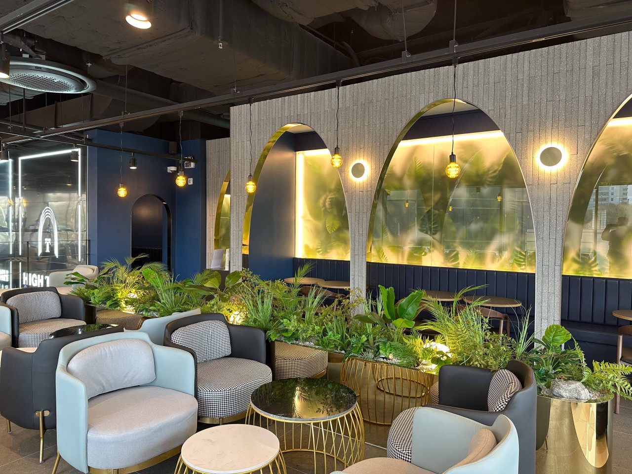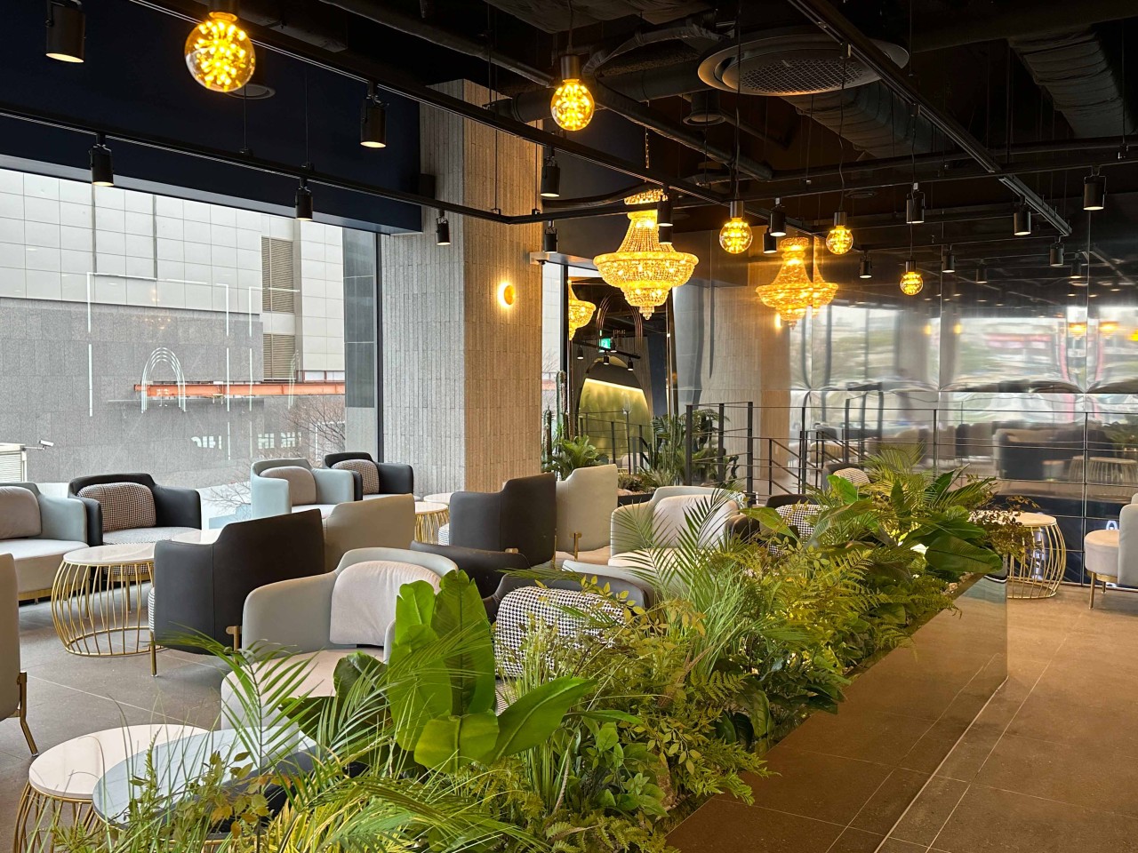 하이테이블의 클래식한 인테리어와 조화되는 풍성한 그린 테라피 연출로, 도심 속에서 즐기는 프리미엄 휴식 공간을 완성했습니다.