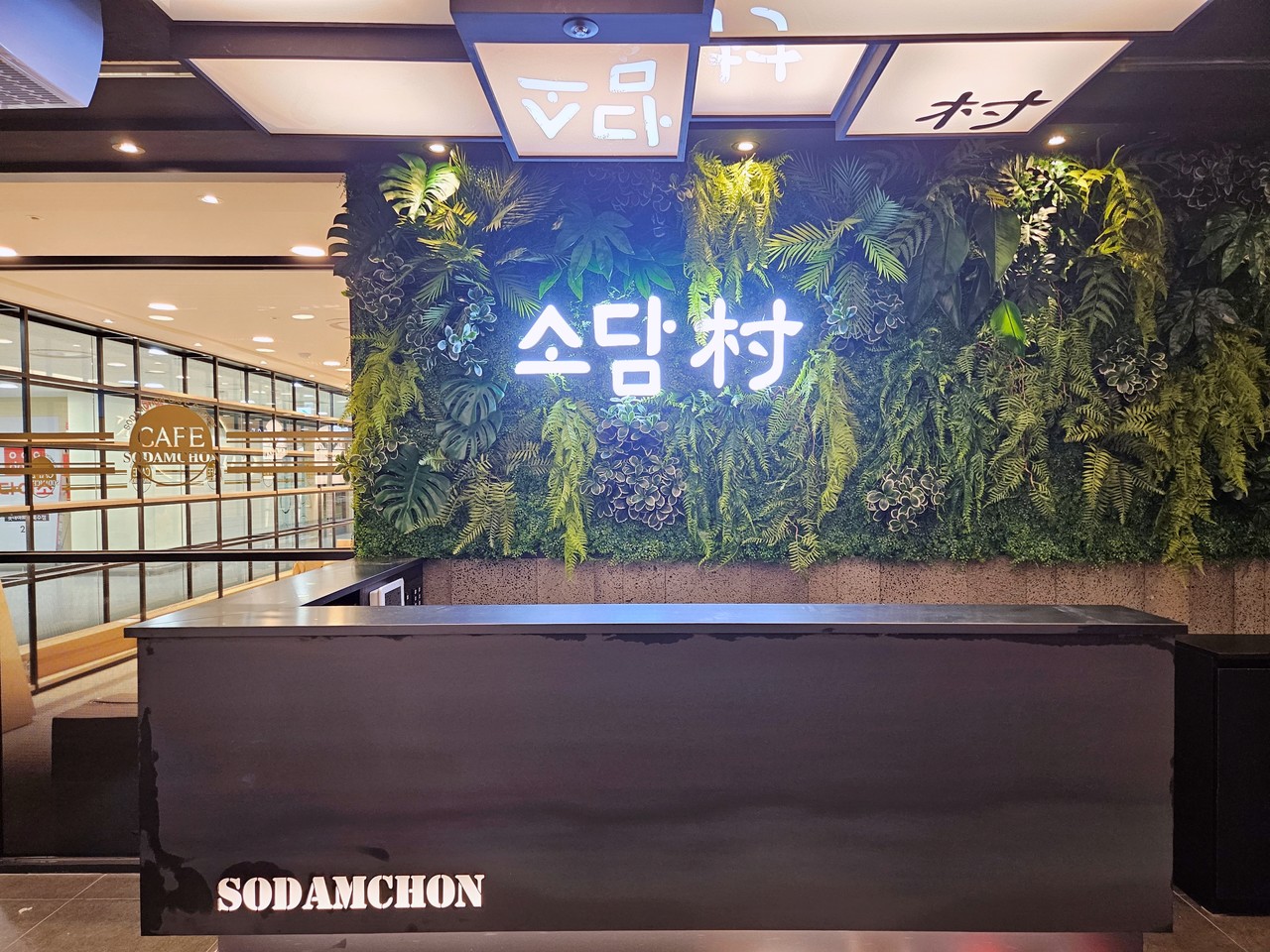 ◦ Design: 네온 사인 로고를 중심으로 다양한 식재를 배치해 브랜드 아이덴티티를 강조했습니다.