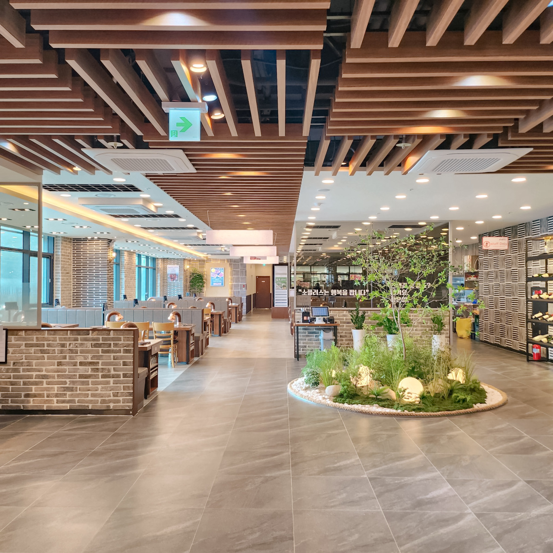 ◦ Concept: 'Forest Dining'을 테마로 식당 내부의 경직된 분위기를 완화하고 생동감을 더했습니다.