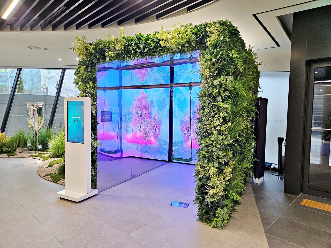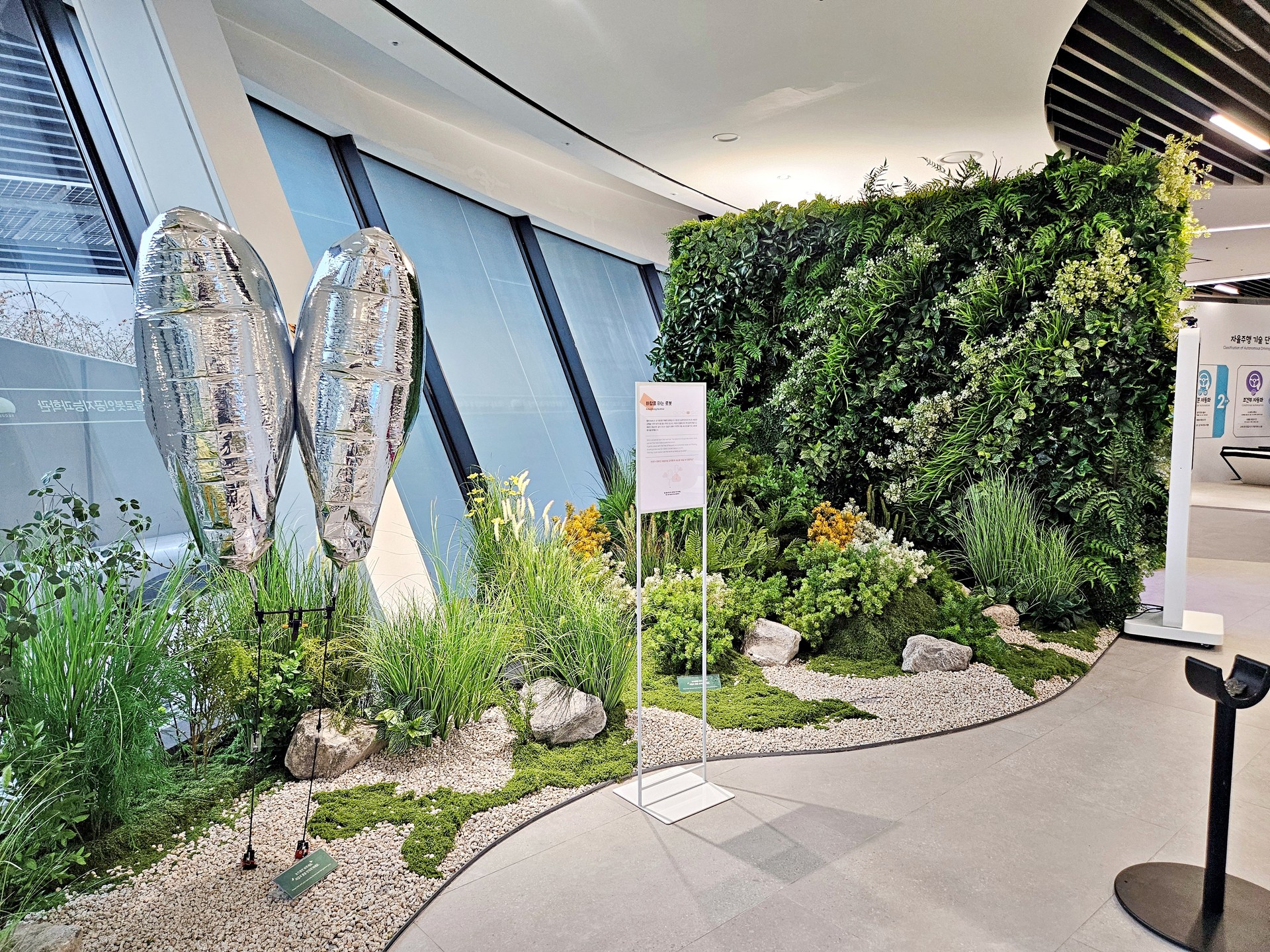 기술과 인간이 공존하는 미래의 모습을 싱그러운 식재 연출로 시각화하여,