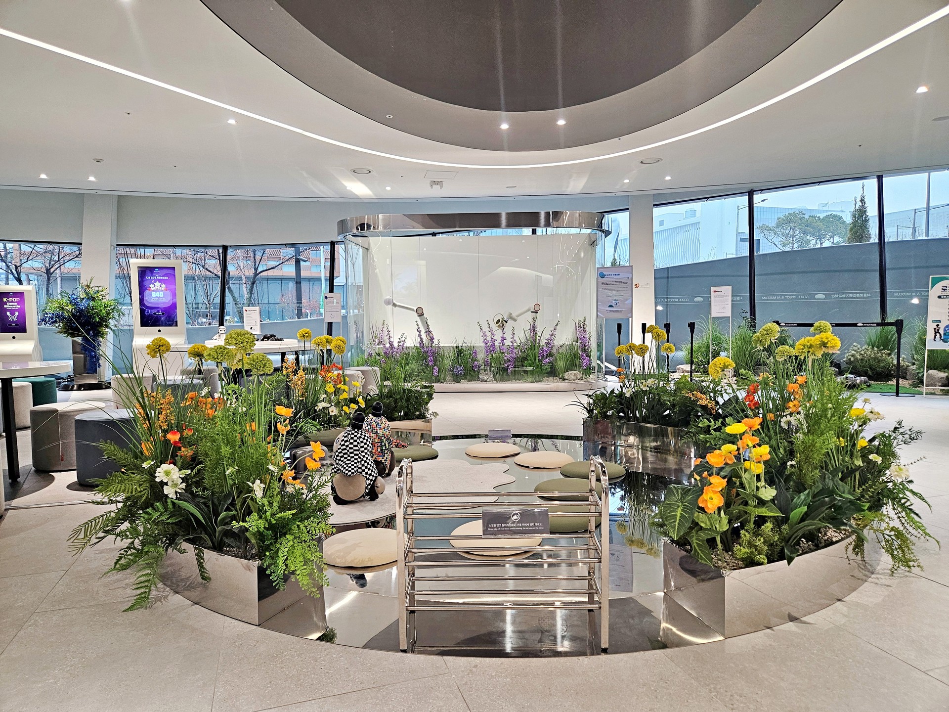 ◦ Design: 거울 소재의 테이블과 곡선형 화단을 활용해 무한히 확장되는 미래 정원을 연출했습니다.