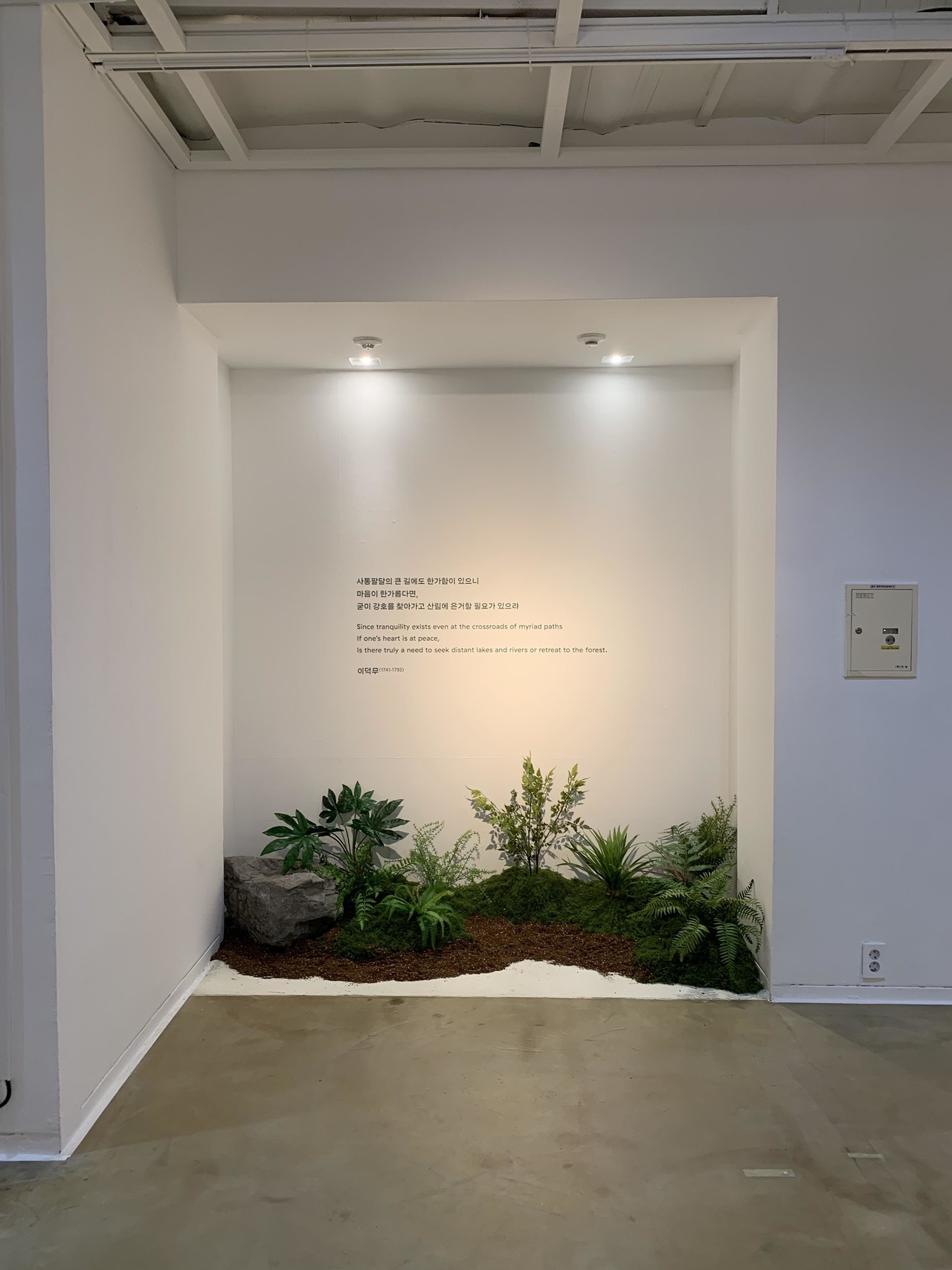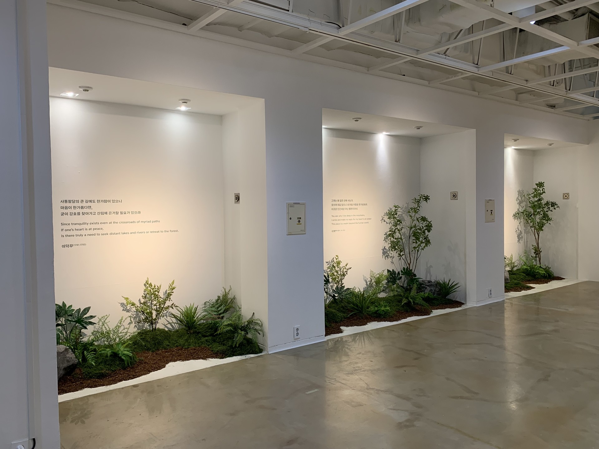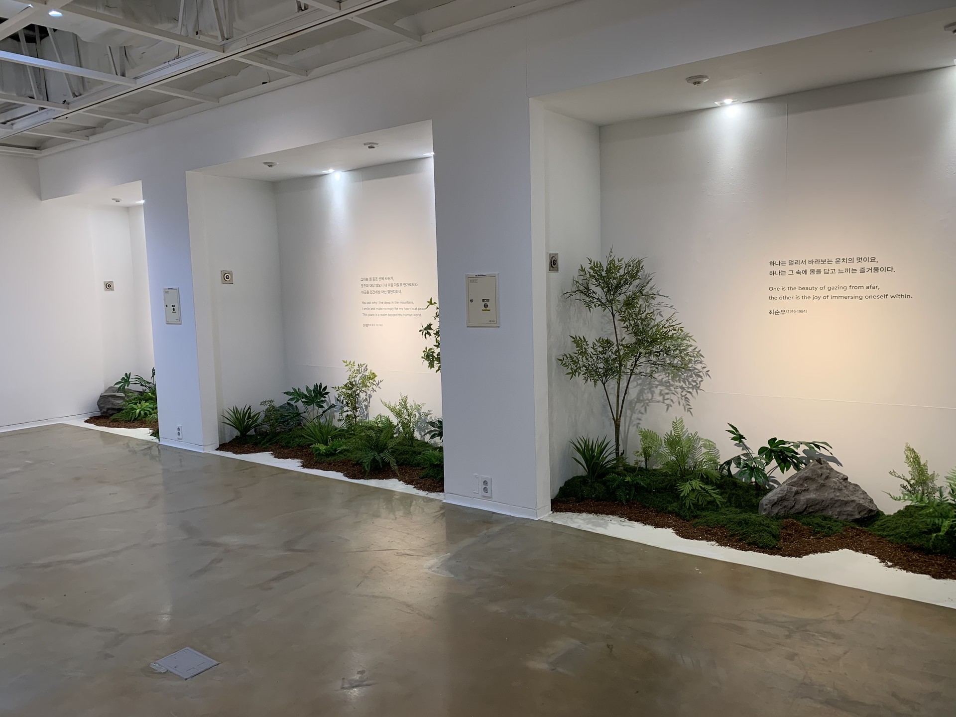◦ Concept: '사색의 숲'을 테마로 한국 전통 미학의 여백과 자연의 질감을 전시 공간에 녹여냈습니다.