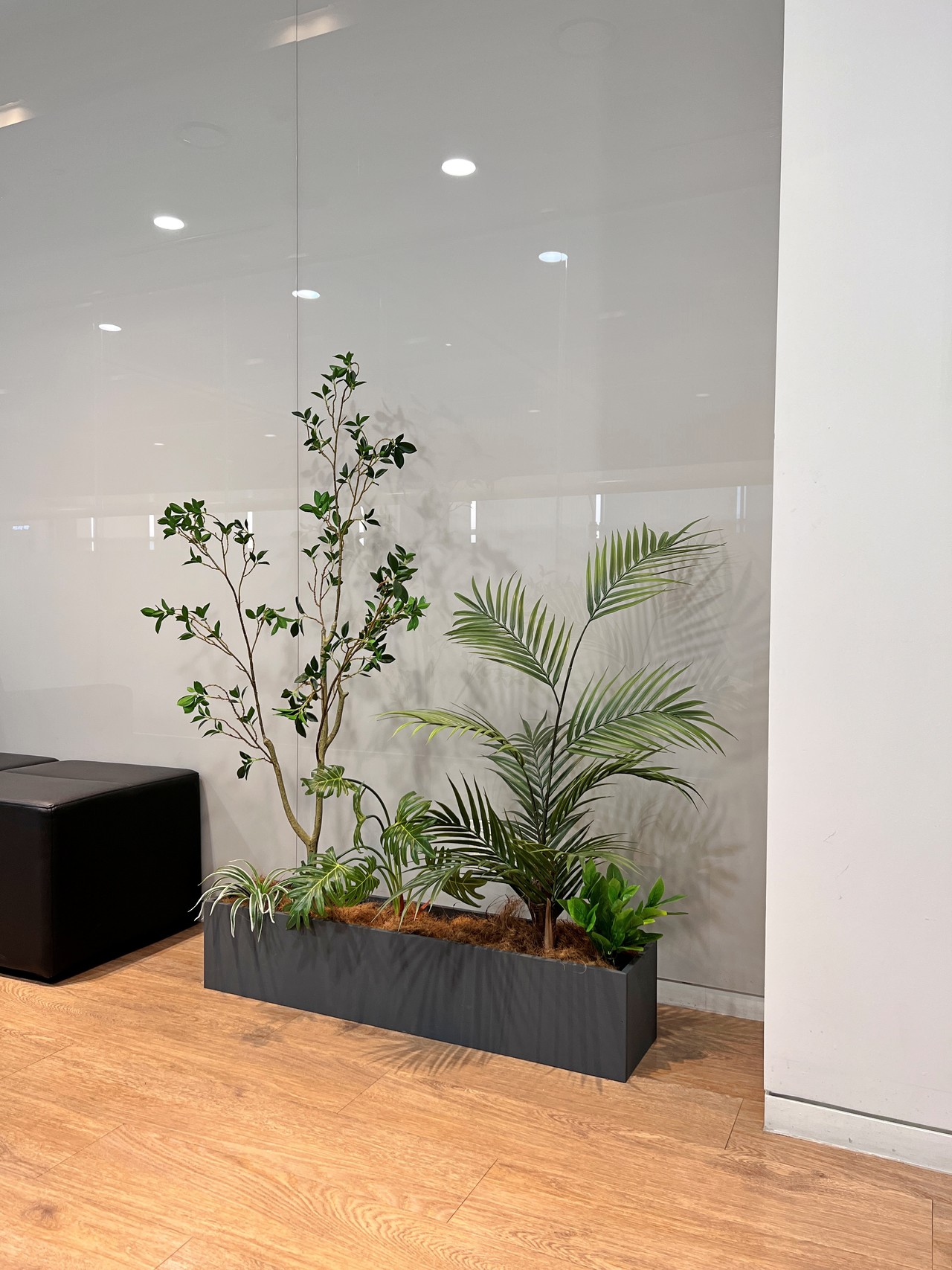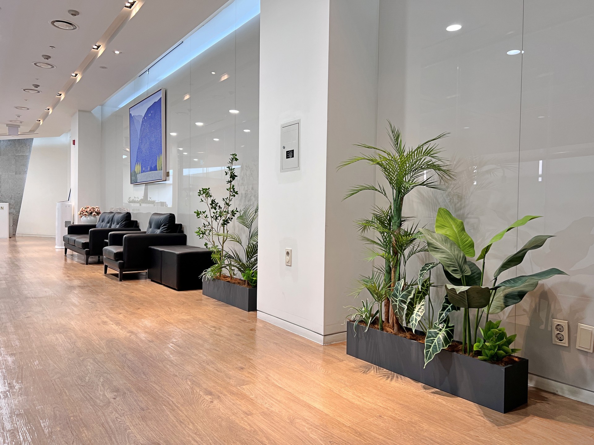 ◦ Design: 라운지의 고급스러운 인테리어와 조화를 이루는 모던한 플랜터를 배치해 공간의 격을 높였습니다.
