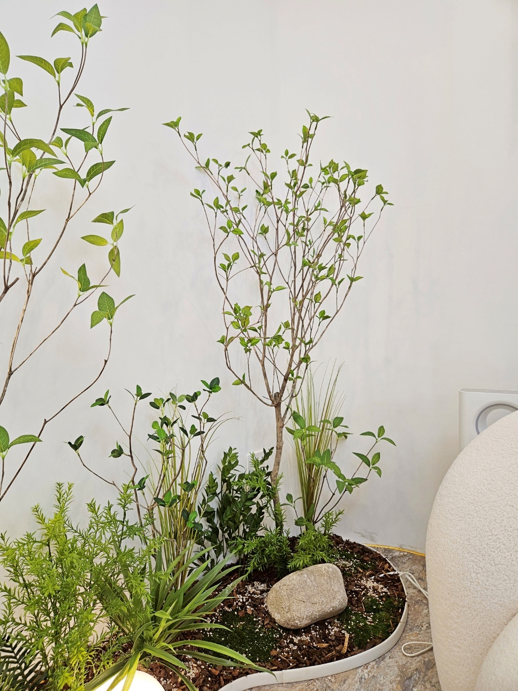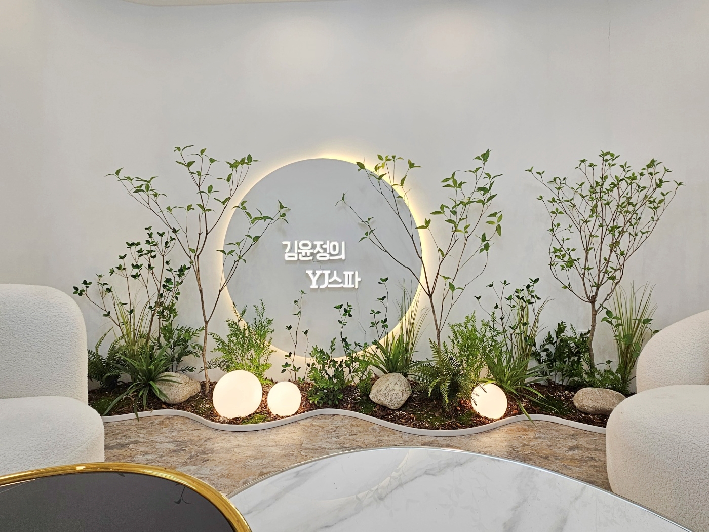 ◦ Materials: 인조 수목, 인조 이끼, 고사리류, 자연석, 구형 조명, 곡선형 프레임