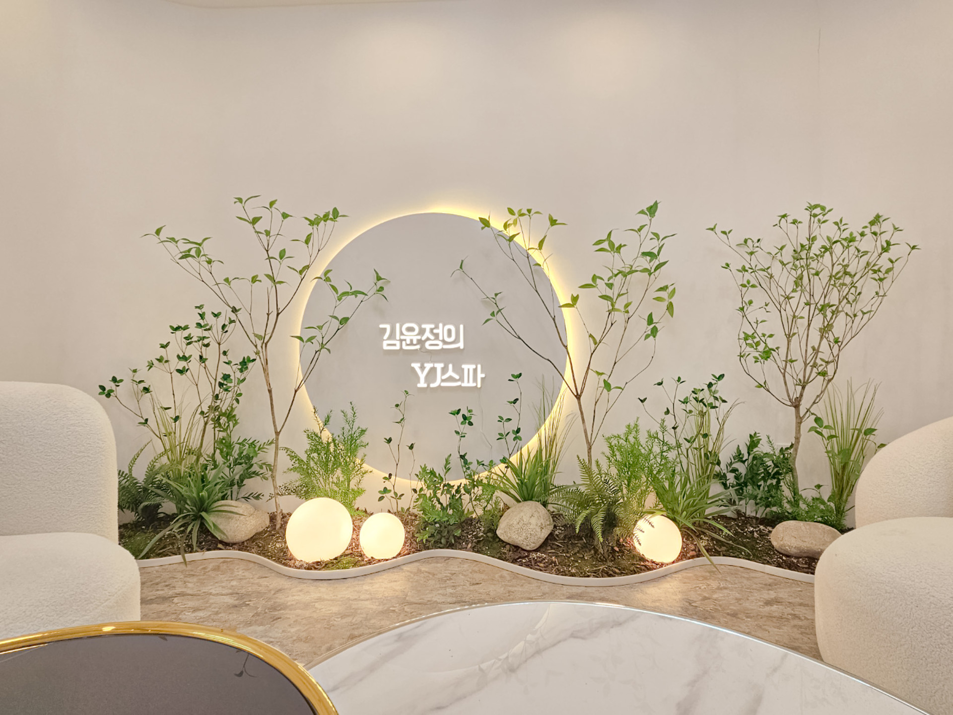 ◦ Detail: 따뜻한 톤의 구형 조명과 자연석, 섬세한 식재 레이어링으로 몽환적이고 고급스러운 분위기를 완성했습니다.