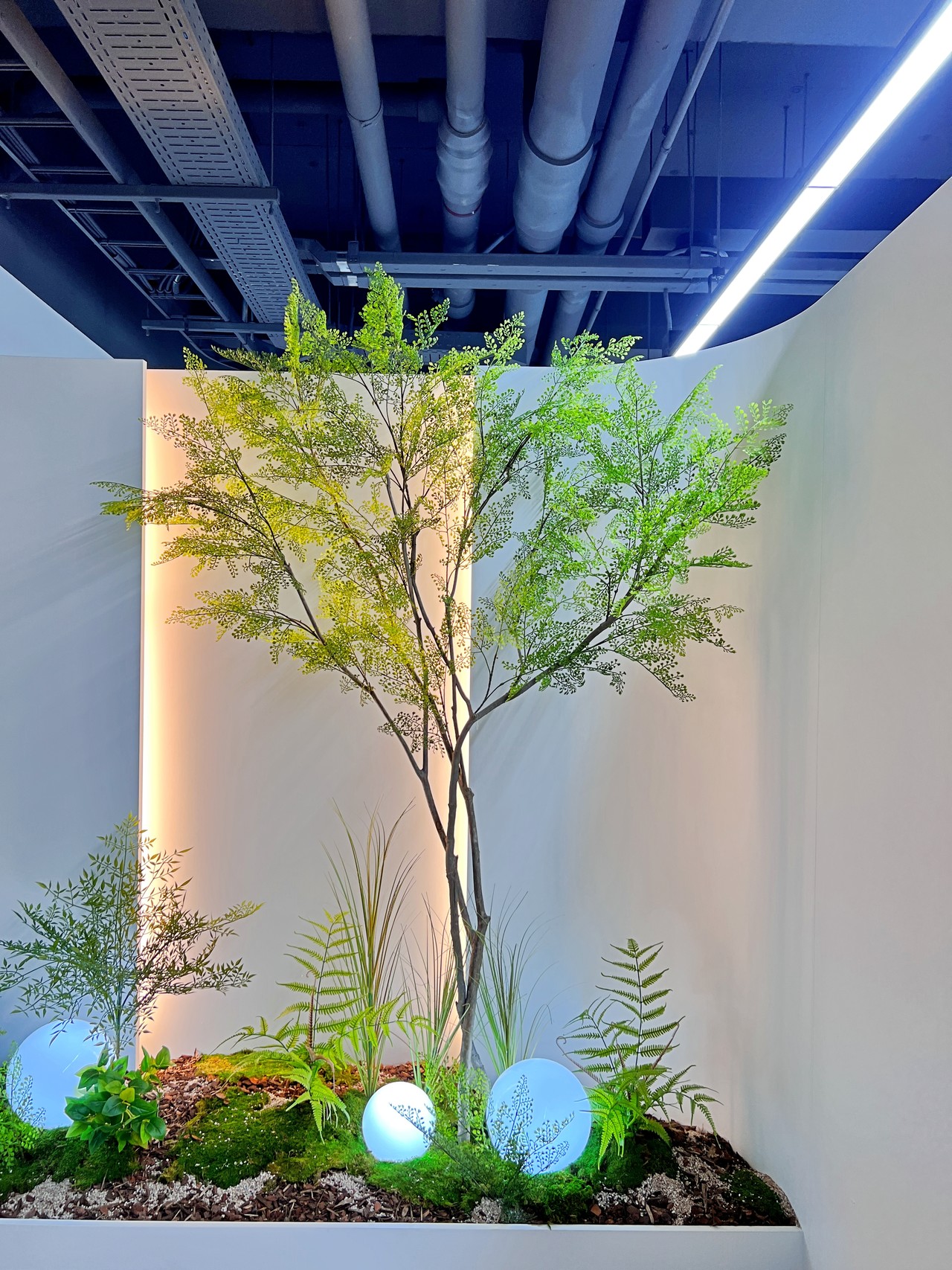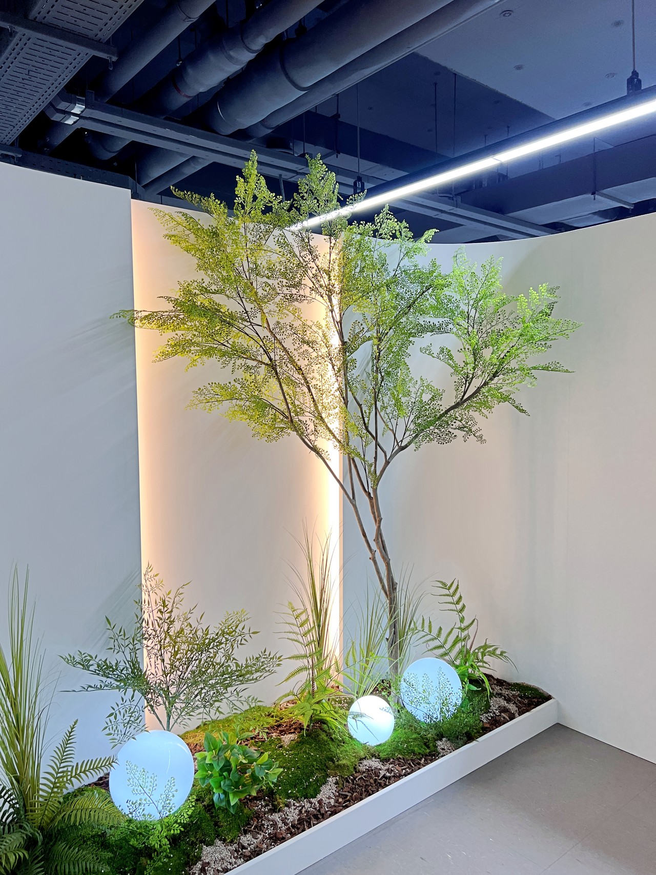 ◦ Materials: 인조 수목, 인조 이끼, 고사리류, 우드칩, 구형 조명, 백라이트 패널
