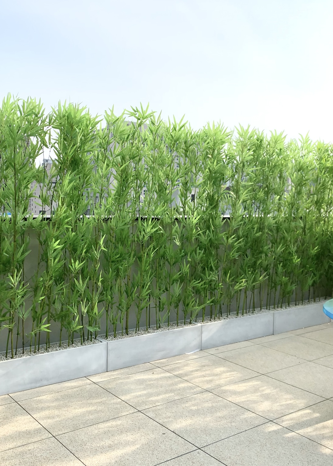 ◦ Design: 루프탑 경계를 따라 대나무 스크린을 배치하여 시각적 차폐와 동시에 아늑한 정원의 분위기를 조성했습니다.