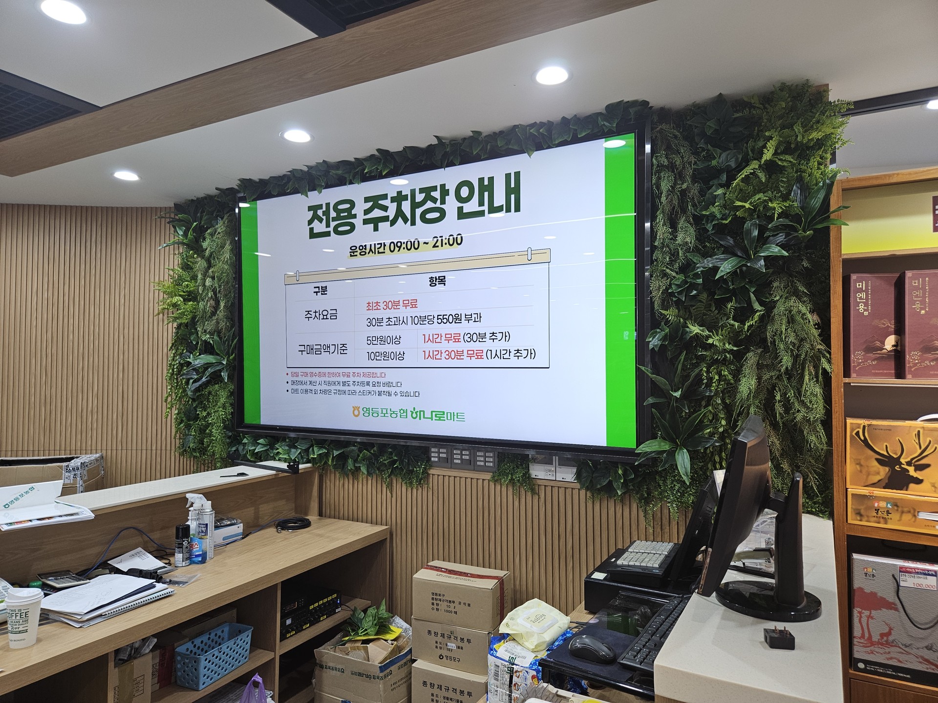 차가운 벽면을 싱그러운 녹음으로 가득 채워 마트 방문객들에게 쾌적한 쇼핑 환경을 선사합니다.