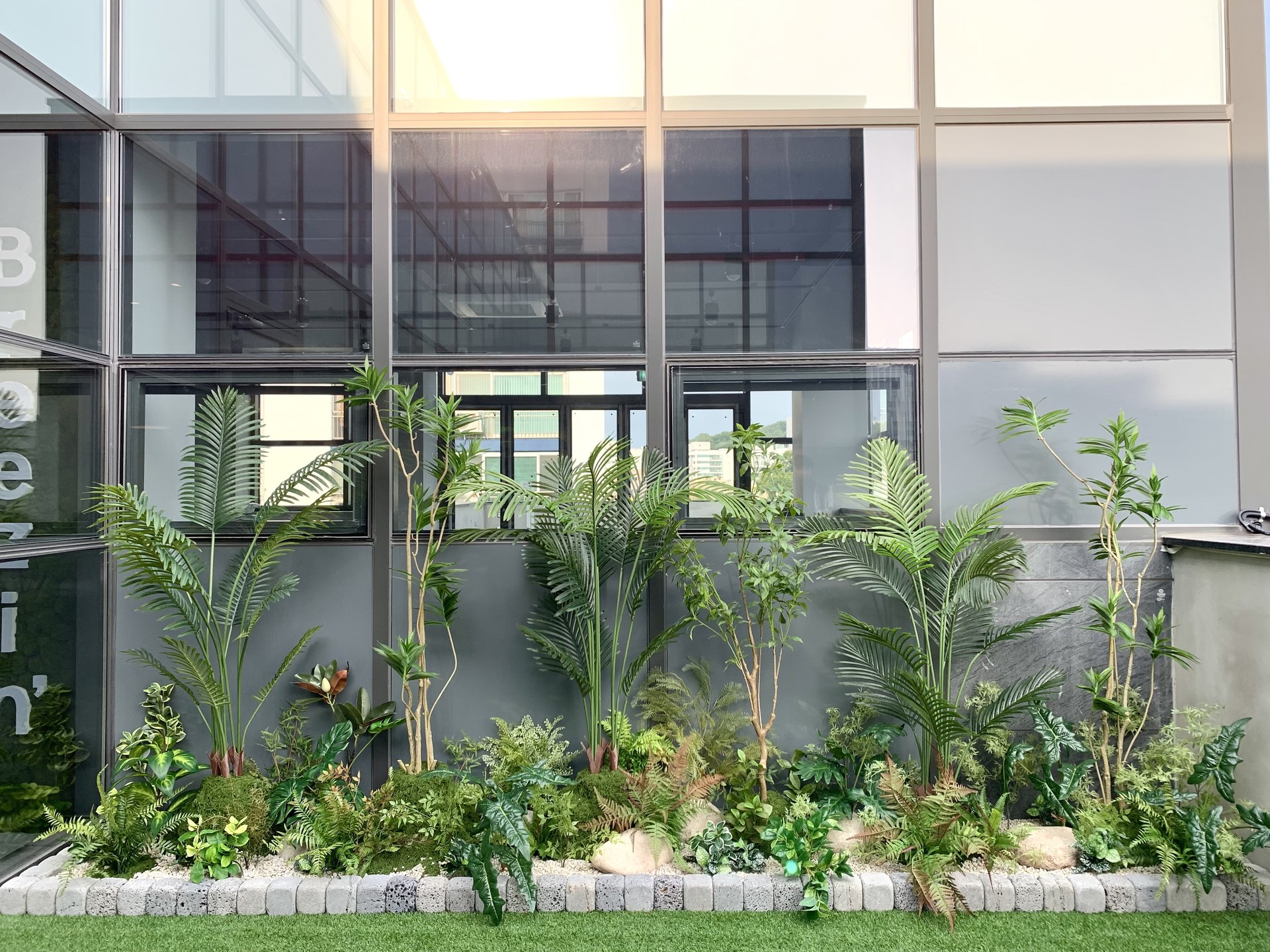 ◦ Materials: 인조 야자수, 인조 대나무, 고사리류, 인조 잔디, 현무암 경계석, 백자갈, 자연석